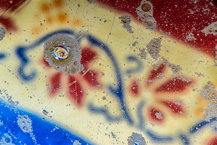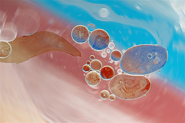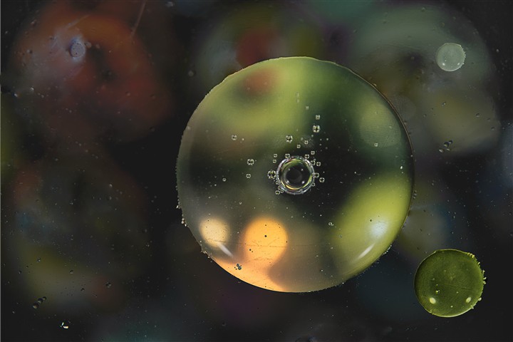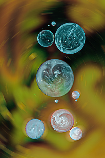 Un mini-studio, de l'eau, de l'huile, des colorants, je joue avec l'éclairage et voilà quelques images.