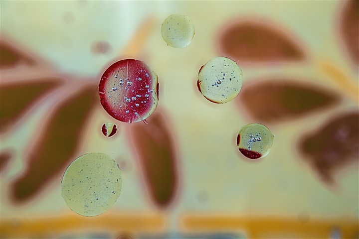 Un mini-studio, de l'eau, de l'huile, des colorants, je joue avec l'éclairage et voilà quelques images.